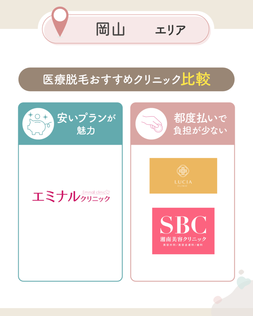 そこで本記事では、2026年4月時点、岡山エリアの医療脱毛おすすめクリニック6選一覧を詳しく紹介!
