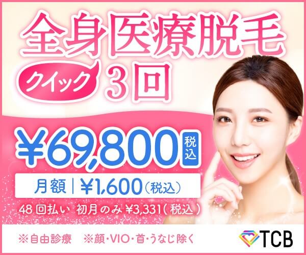 TCB東京中央美容外科新宿三丁目院・新宿東口院・新宿西口院![]() | 3回(通常料金)(VIO・顔・うなじ・首を除く):69,800円 5回(通常料金)(VIO・顔・うなじ・首を除く):98,000円 | 1回(通常料金):118,800円 3回(通常料金):198,000円 5回(通常料金):298,000円 | 1回(通常料金):138,000円 3回(通常料金):298,000円 5回(通常料金):389,000円 |