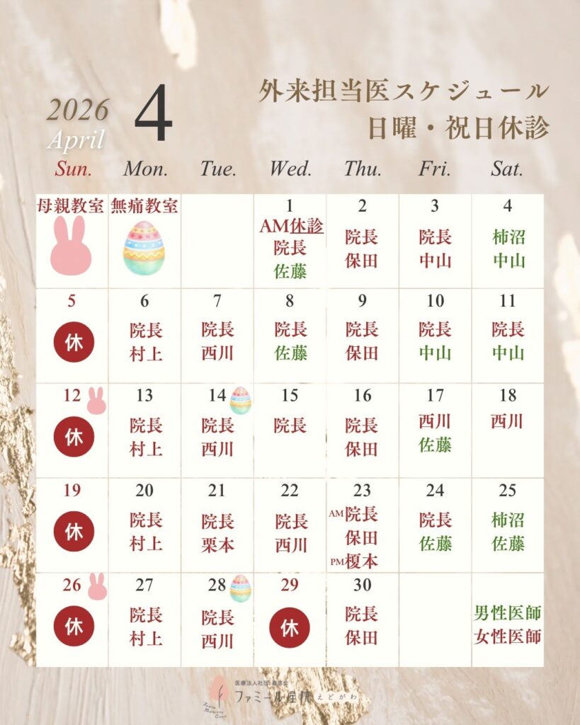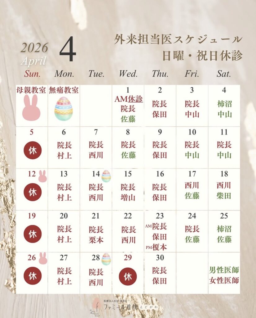 お産施設であるため、緊急対応等が発生する場合もございます。